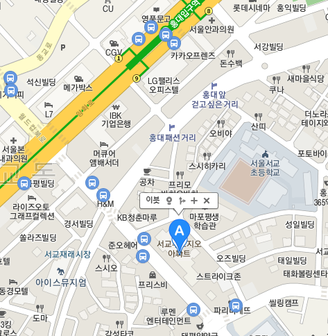 대부분은 합정역 근처이지 홍대에 있지는 않다