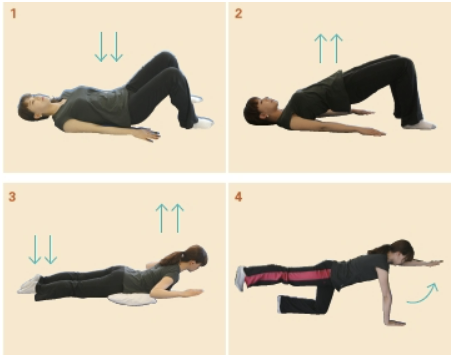 잠자기 전 10분간 아래의 운동을 꾸준히 한다면 요통을 예방하고 완화시키는데 효과를 볼 수 있다.