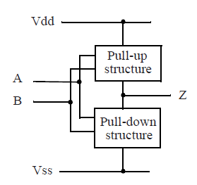 즉 pull-up구조와 pull-down구조는 하나가 turn on되면 반드시 다른 하나는 turn off되는 항상 반대로 작동하기 때문에 상보대칭형 구조이라는 것이다.