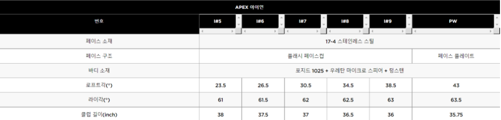 'APEX' 아이언은 'DCB'와 비교 시 로프트각이 높기 때문에 탄도와 백스핀량을 높이기 유리합니다.