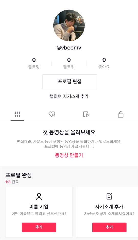 그래서 틱톡에 회원 가입을 해서 첫 영상을 올려보았다