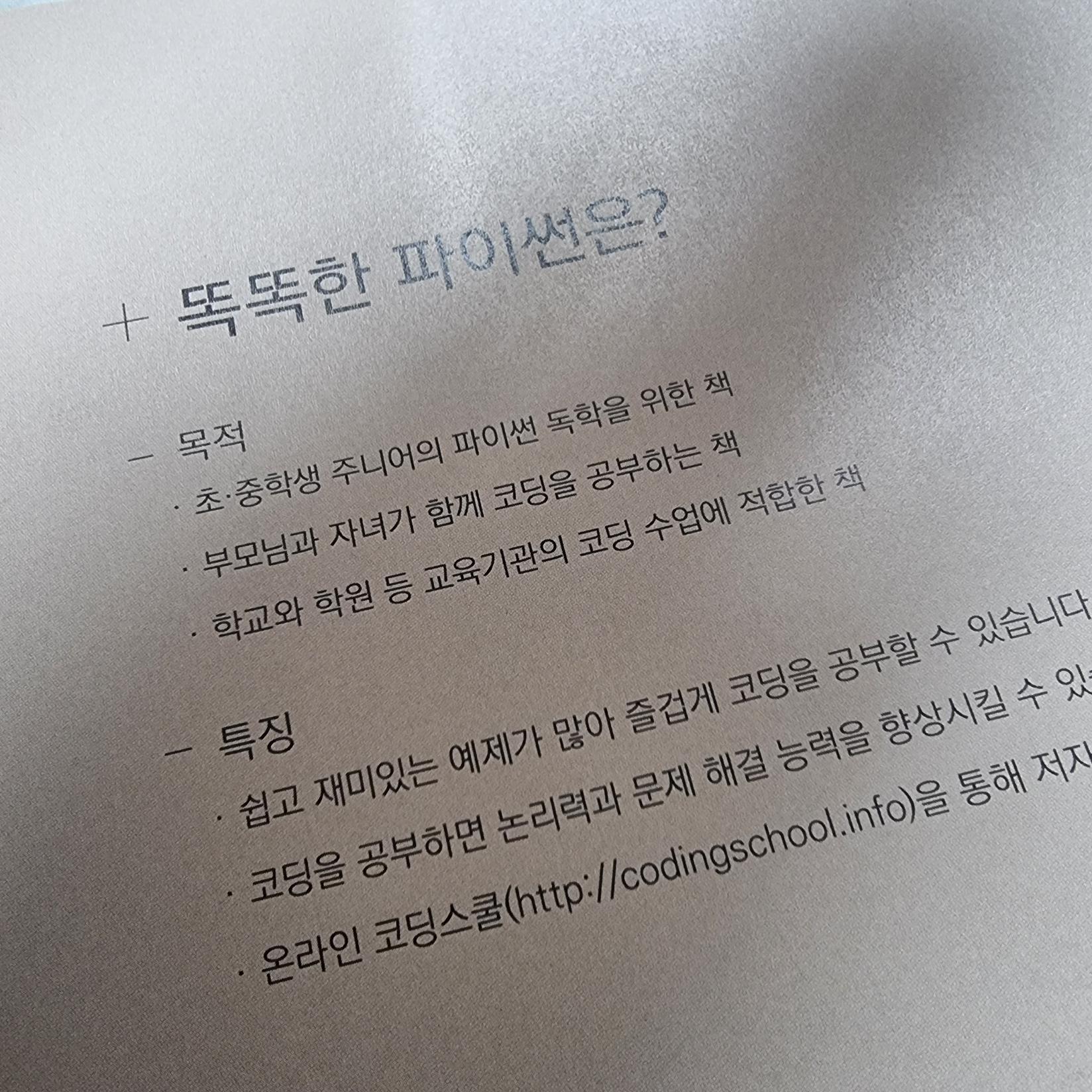 오늘은 그 기본서중 하나인 똑똑한 파이썬이라는 책을 리뷰해보려고 한다.