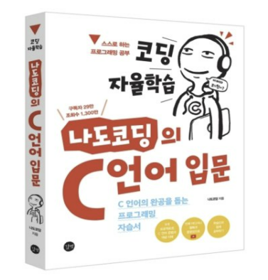 기존에 HTML+CSS+자바 내용이 포함된 나도코딩 책이었고, 이번에는 C언어 내용만 포함되어있는 코딩 기본 입문서이다.