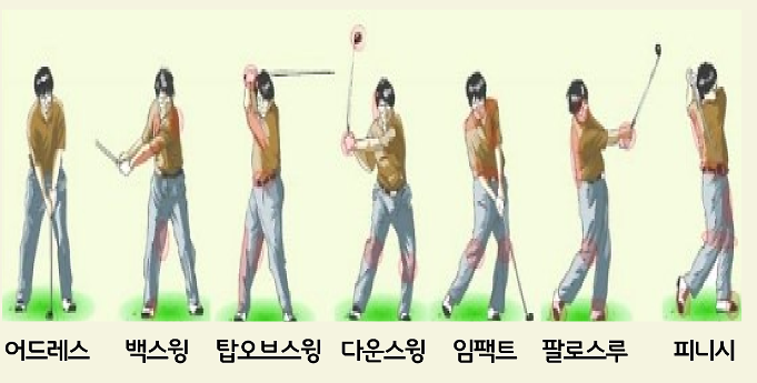 이 5가지를 아래 골프 스윙을 7가지를 나누었을 때 각 구간별로 살펴보자.