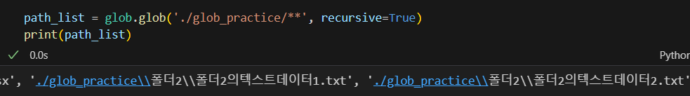 만약 여러 깊이의 하위폴더 내부까지도 탐색하고 싶다면, recursive=True 매개변수를 전달해야합니다.