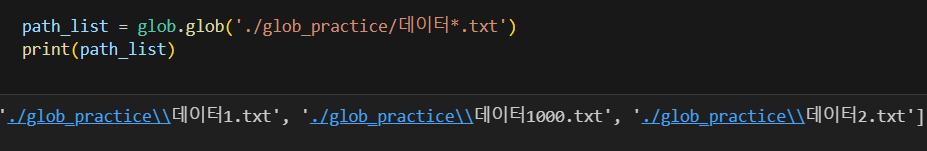 glob(): 사용자가 제시한 조건에 맞는 경로를 가진 파일들의 리스트를 반환하는 함수