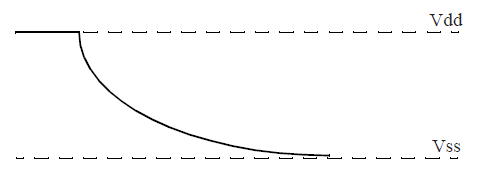 rising time: V = Vdd * [1 - e -t/(Rdh * Cload)]