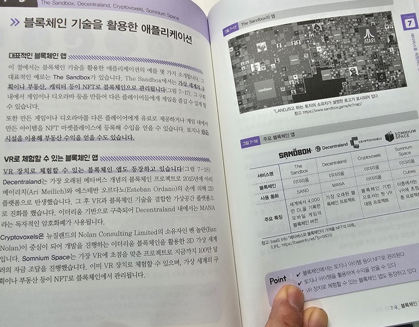 샌드 박스의 경우 가상 세계의 구회이나 부동산, 캐릭터 등이 NFT로 블록체인으로 관리되고 있다.