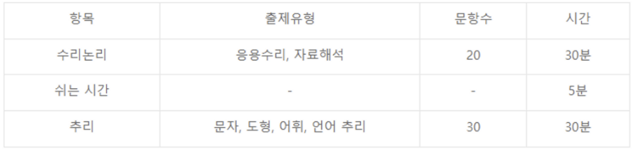 2020년부터 코로나19 영향으로 온라인 시험이 되면서 수리 20문항, 추리 30문항(60분)으로 크게 줄었다