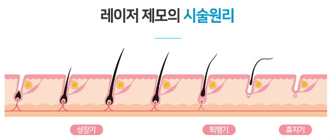 레이져 제모는 검은색 모낭을 타깃으로 태워 반 영구적으로 제모효과를 보는 레이져 시술이다.
