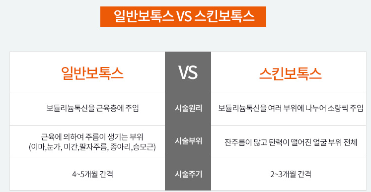 스킨 보톡스는 희석된 보톡스를 진피층에 얕게 놓은 시술이다. 근육 보톡스는 근육을 잡아주기 때문에 근육에 놓는 것이고, 스킨 보톡스는 미세근육을 억제시켜 모공축소를 도와주고, 섬유아세포의 콜라겐 생성을 자극하기에 피부탄력과 잔주름 개선에도 용이하며, 혈관이 확장되는 것을 방지해 얼굴이 붉어지는 안면홍조 개선효과까지 얻을 수 있다.