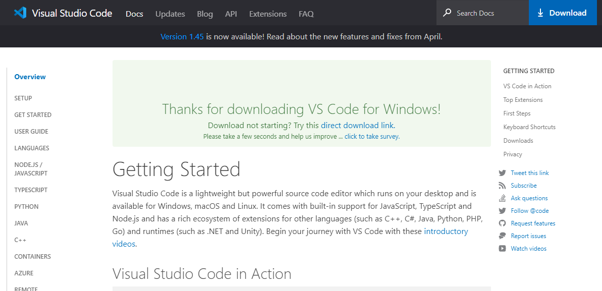 https://code.visualstudio.com/docs/?dv=win
