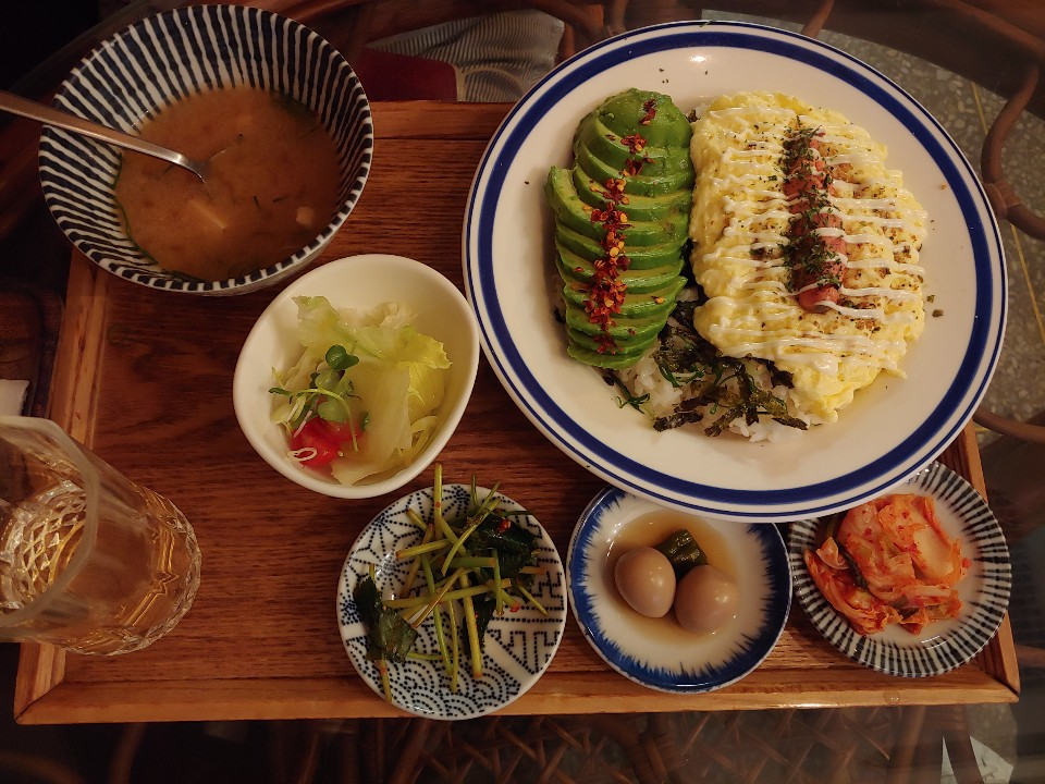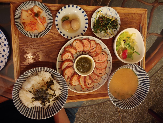 식사는 나무받침대에 반찬과 밥과 함께 나온다.