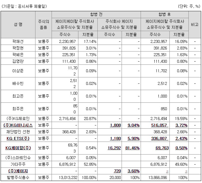 참고로 최근 케이지와 케이지케미칼 합병에 대한 공시 자료에서 발췌했다.