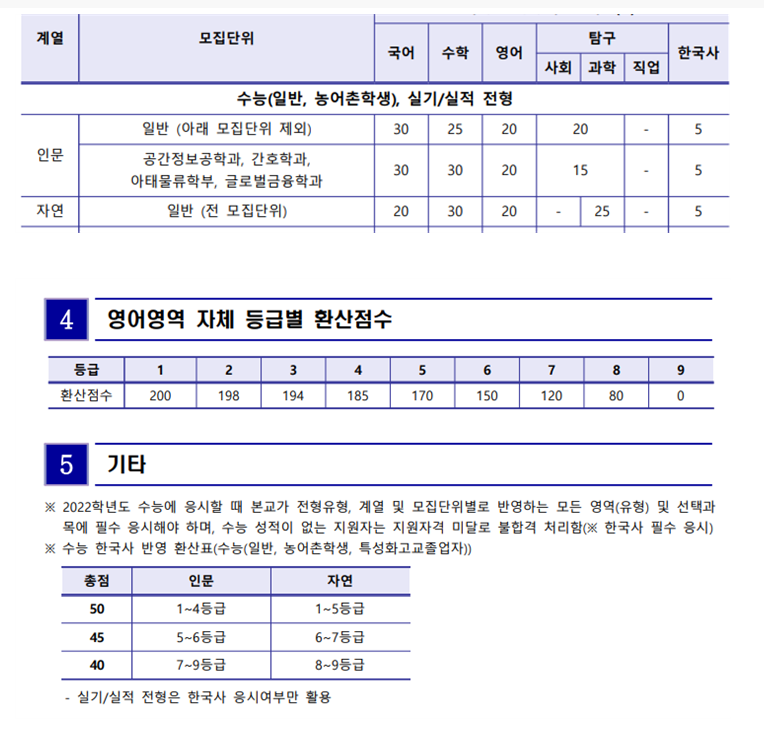 탐구영역은 수능 성적표 상의 백분위를 활용한 본교 자체 산출 변환표준점수 적용함