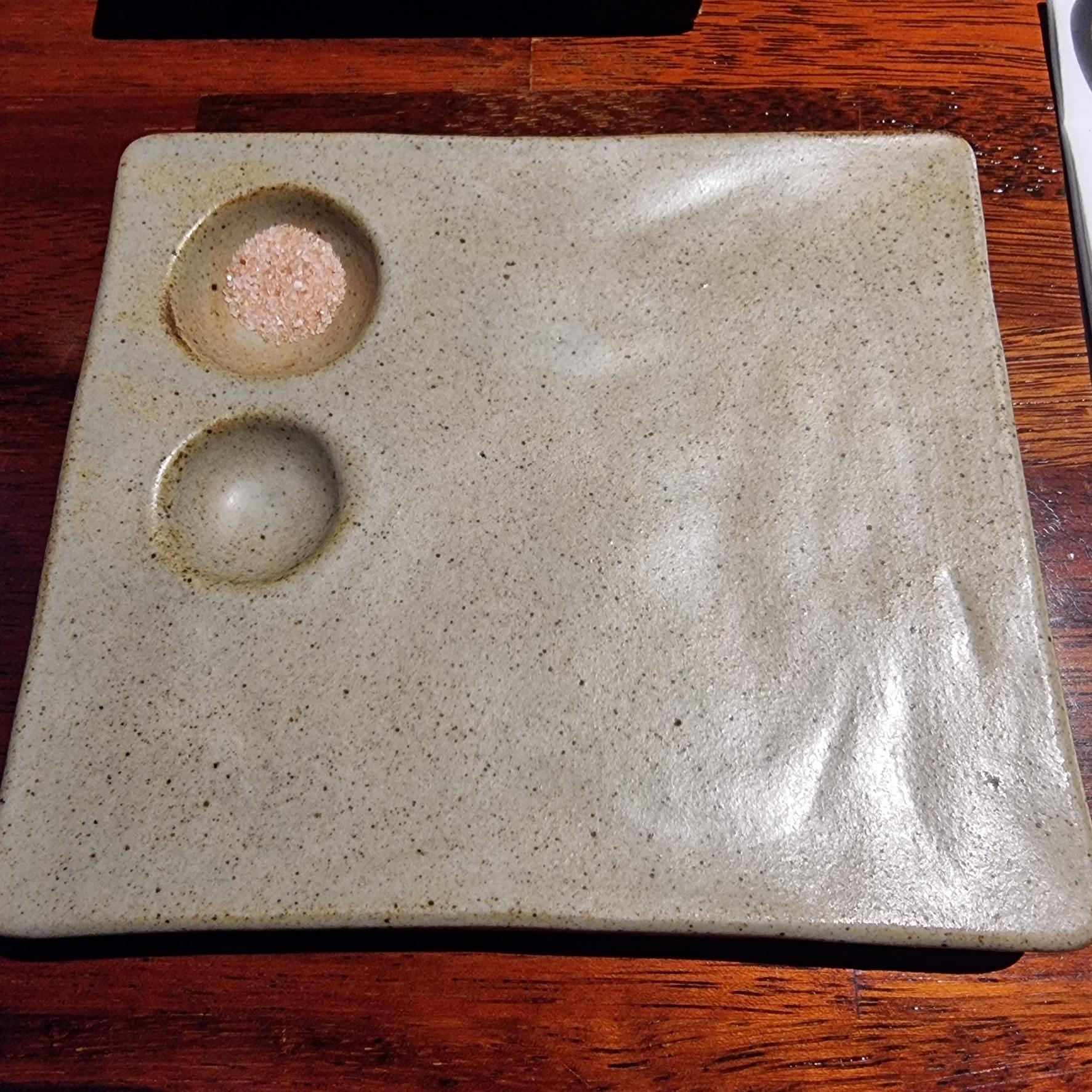 앞접시로는 이렇게 소금이 담긴 이쁜 접시가 놓여있었다.