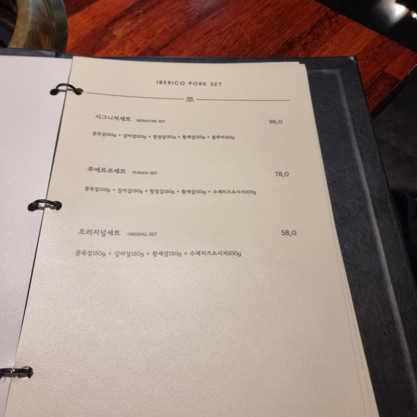 이베리코 돼지 세트 메뉴로는 시그니처세트9.8만/푸에르코세트7.8만/오리지널세트 5.8만 으로 구성되어 있다. 4~2인이 즐길 수 있는 세트메뉴 이고 우리는 오리지널세트로 먹었다.