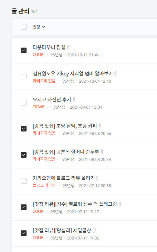 그 다음 카테고리를 변경해야하는 해당 글을 찾아 선택해줍니다.