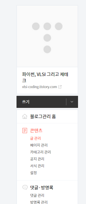 먼저 티스토리 관리 페이지에 들어가서 콘텐츠>글 관리 탭을 들어갑니다.