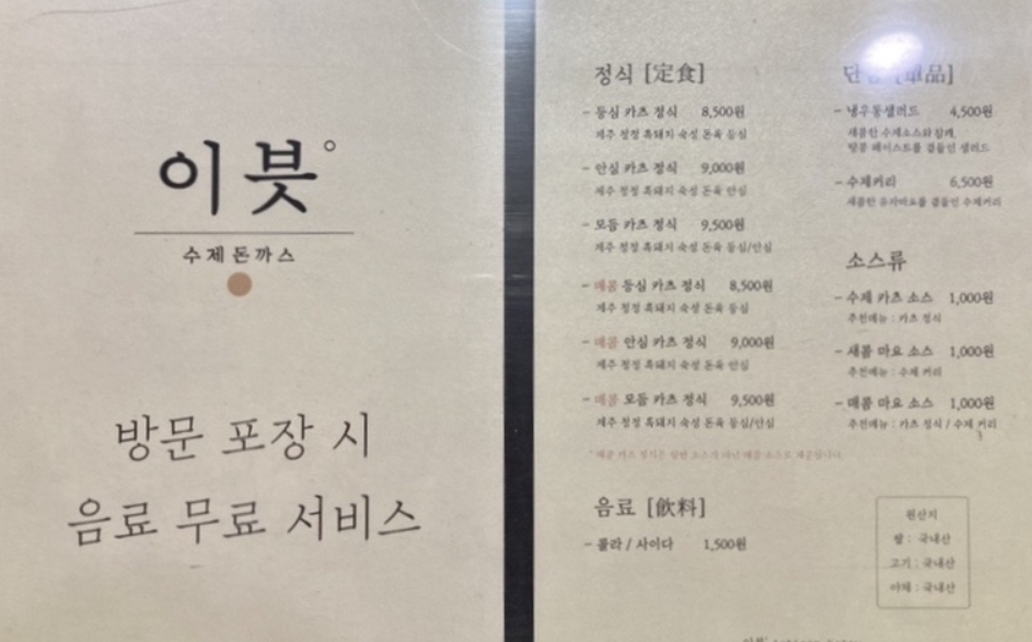안심과 등심 카츠 정식으로 시켰고, 수제 커리를 먹고 싶었으나 품절로 먹지 못했다. 이른 점심 시간이여서 준비를 못하셨단다...아쉬웠다.