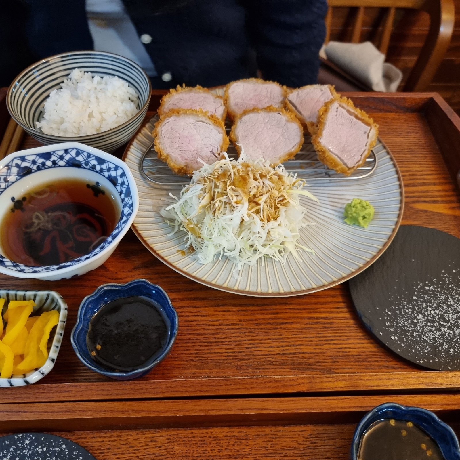 다만, 안심카츠는 흡사 유사한 수준이었다. 매우 부드럽고, 소금과 와사비 조합으로 충분히 즐길 수 있는 수준이었다.