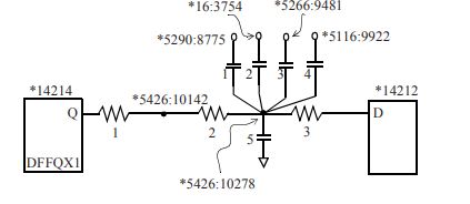 총 커패시턴스만 있고 다른 정보는 제공되지 않는 *D_NET 또는 *R_NET 구성을 사용하여 정의할 수 있습니다. 집중 커패시턴스의 예는 다음과 같습니다.