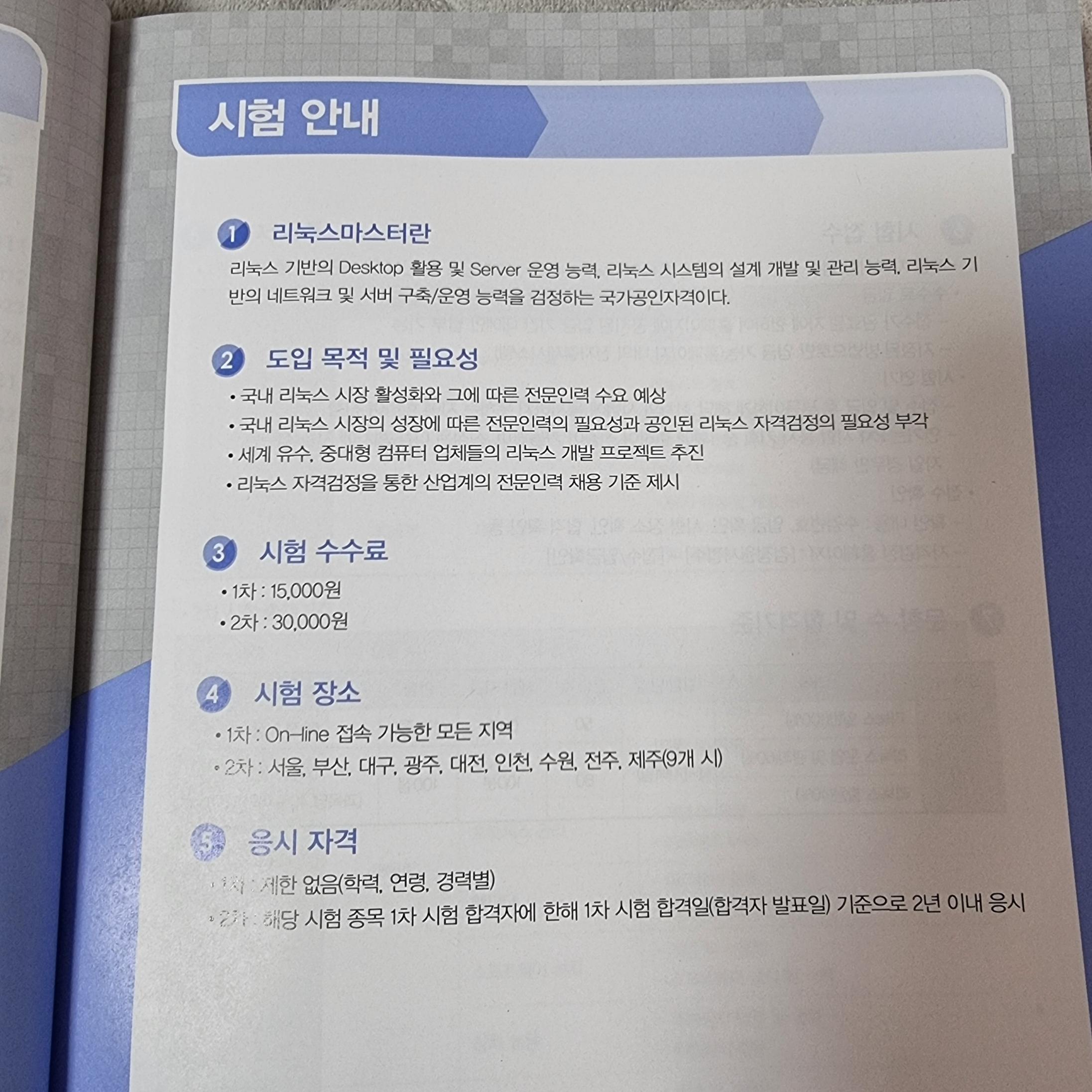 리눅스 마스터 자격증은 2급과 1급으로 나누어져 있다