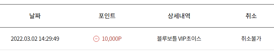 포인트는 10,000원 차감되고, VVIP 초이스 1회 소진이 된다.
