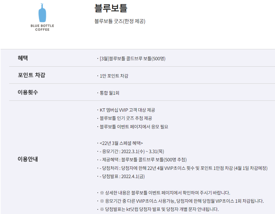 KT 홈페이지 블루보틀 이벤트 페이지에서 응모가 필요하다.