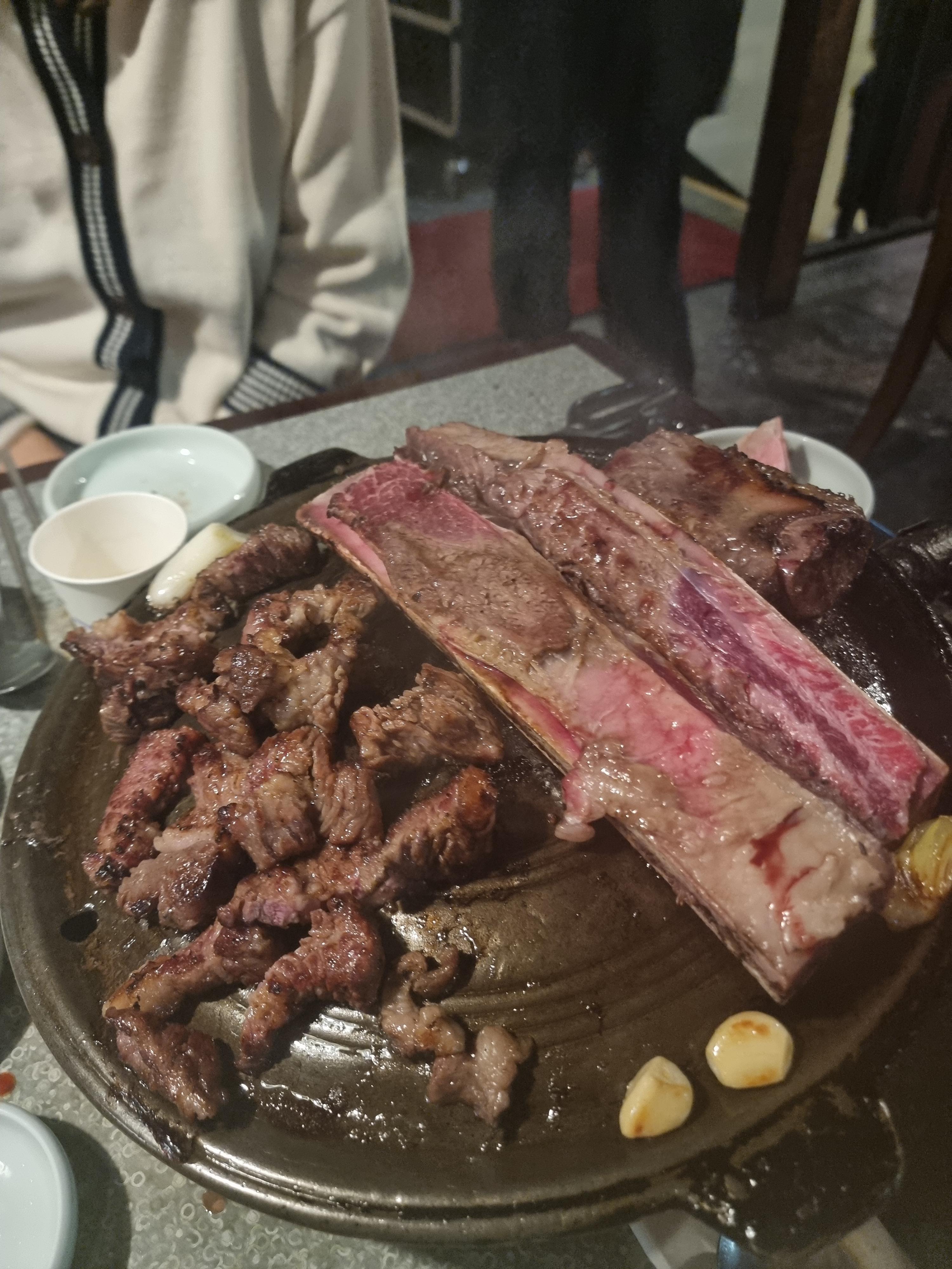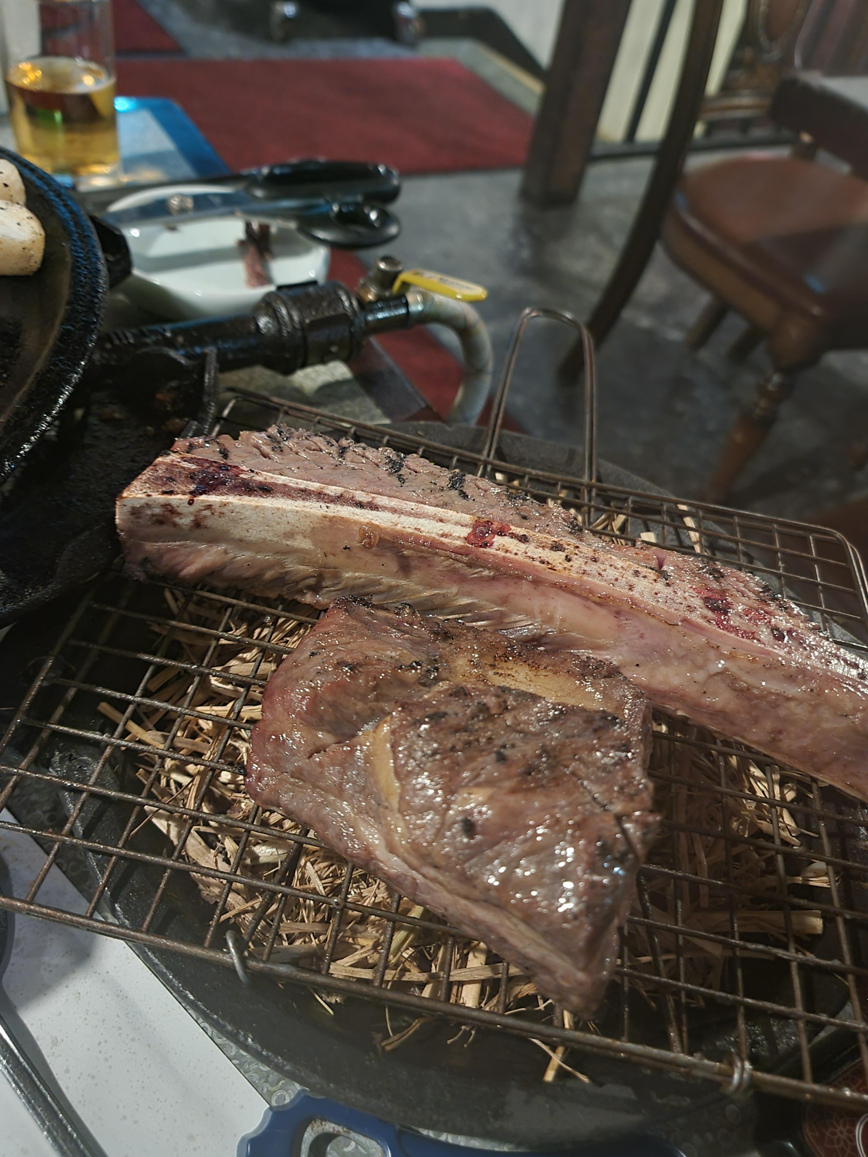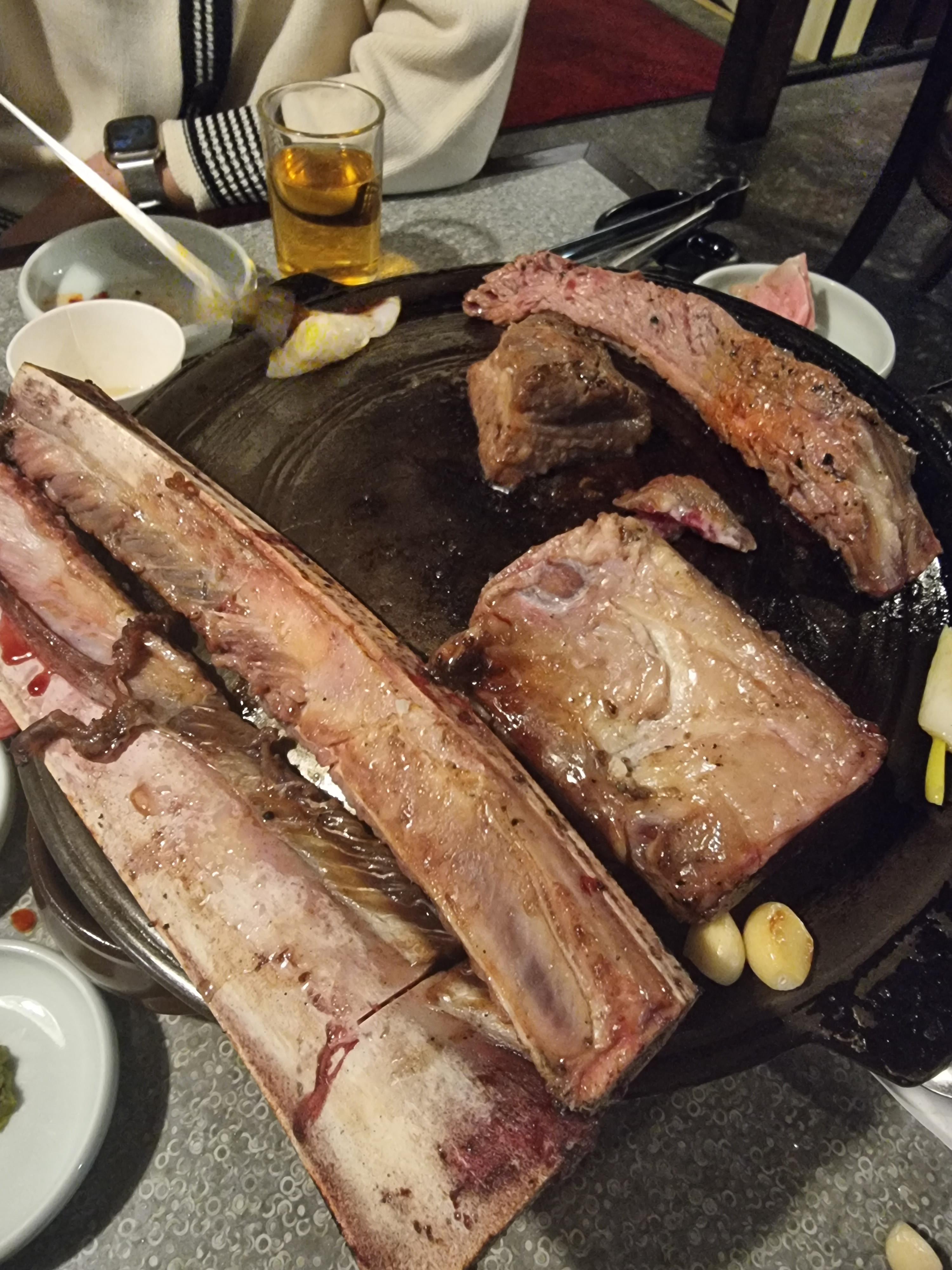 바로이렇게 갈비 2대를 함께 올려두고 술과 한잔했다