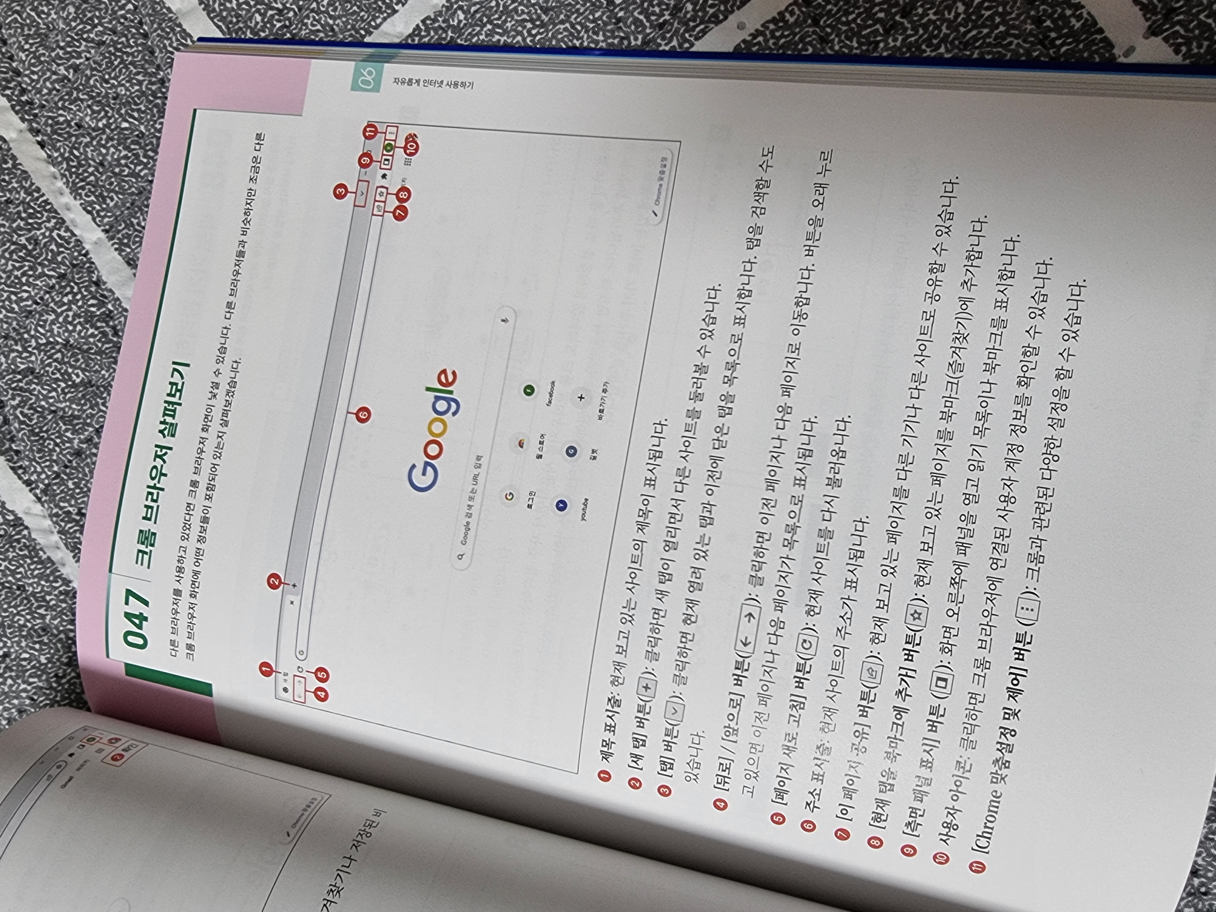 크롬 브라우저를 설치하는 법도 잘 나와있고 그 기능들에 대해서 친절하게 설명하고 있다.