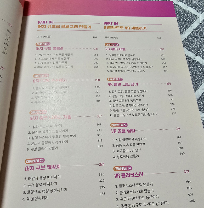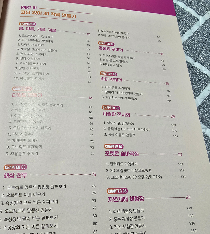 책은 3D 제작을 쉽게 할 수 있고, 애들이 좋아할 만한 게임 및 VR/AR 등등 다양하게 구성이 되어 있다.