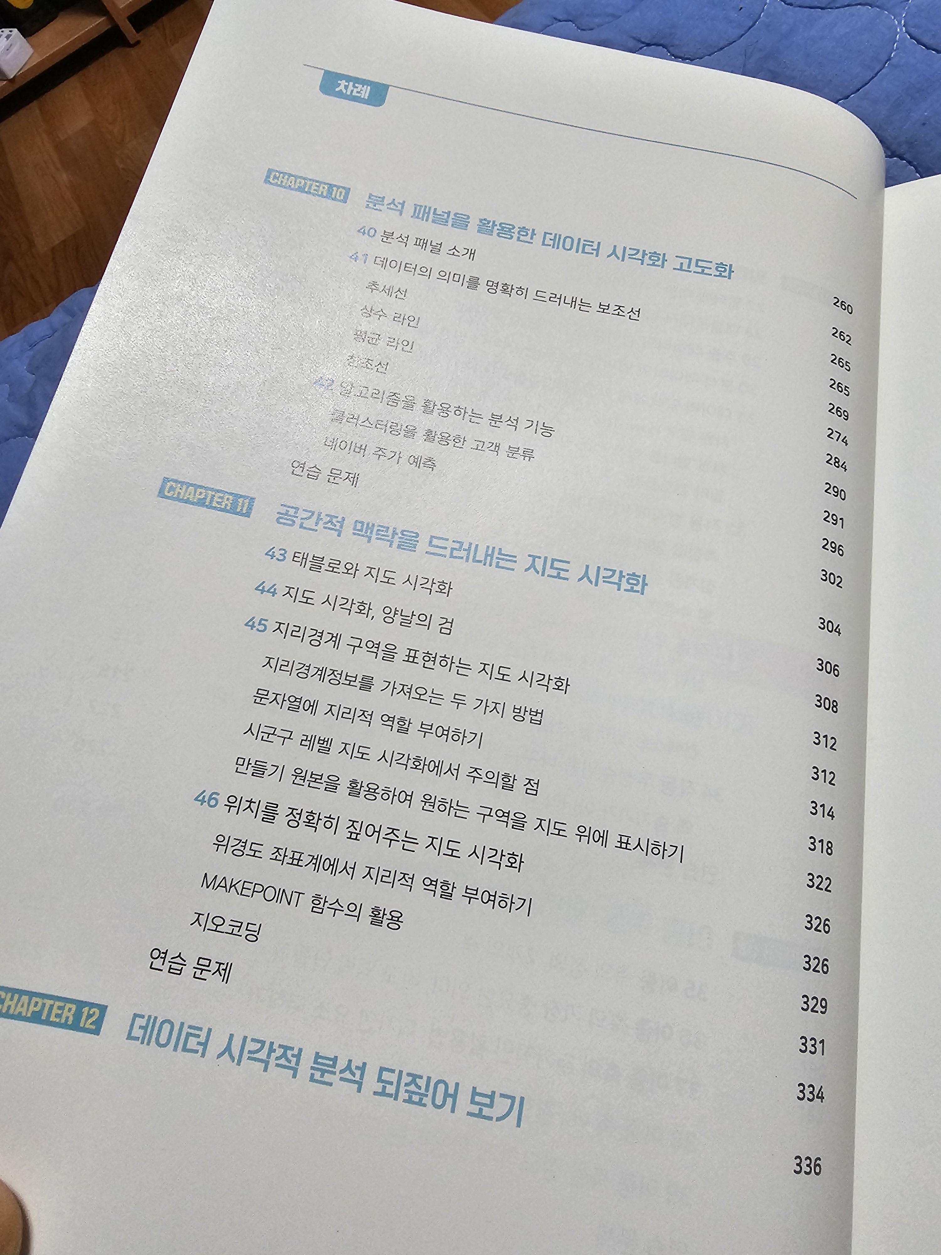 데이터 시각화을 위한 기본 개념부터, 학습 내용에 대해 시각화 자료와 도표 그림들을 통해 효과적으로 전달하고 있고, 연습문제 및 정답 ACE TIP 등 본문 학습을 위한 데이터셋, 정답 기타 데이터 등 성능출판사 홈페이지와 저자 블로그에서 다운로드를 받을 수 있으니 참고하자.
