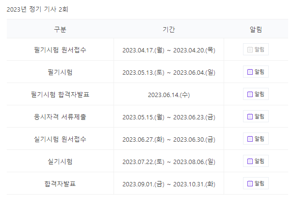 2023년 정기 기사 1회는 이미 지나갔고 이제 2회와 3회가 남아있다.