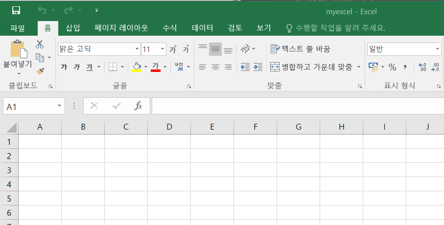 myexcel이라는 빈 엑세파일을 만들고