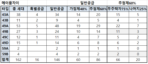 일반공급 물량은 모두 60제곱 이하로 추첨제 60%에 해당한다.