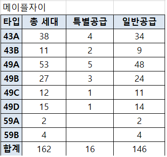 3307세대 중 일반분양 162세대