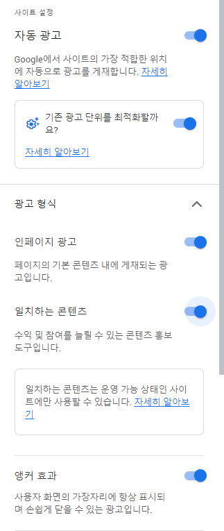 1. 먼저 아래 화면에서 자동광고를 활성화해주자.