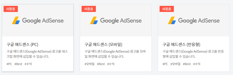 이제 광고를 넣기 위해서 관리-플러그인에 들어가서 pc,모바일,반응형 3가지에 코드를 입력한다.