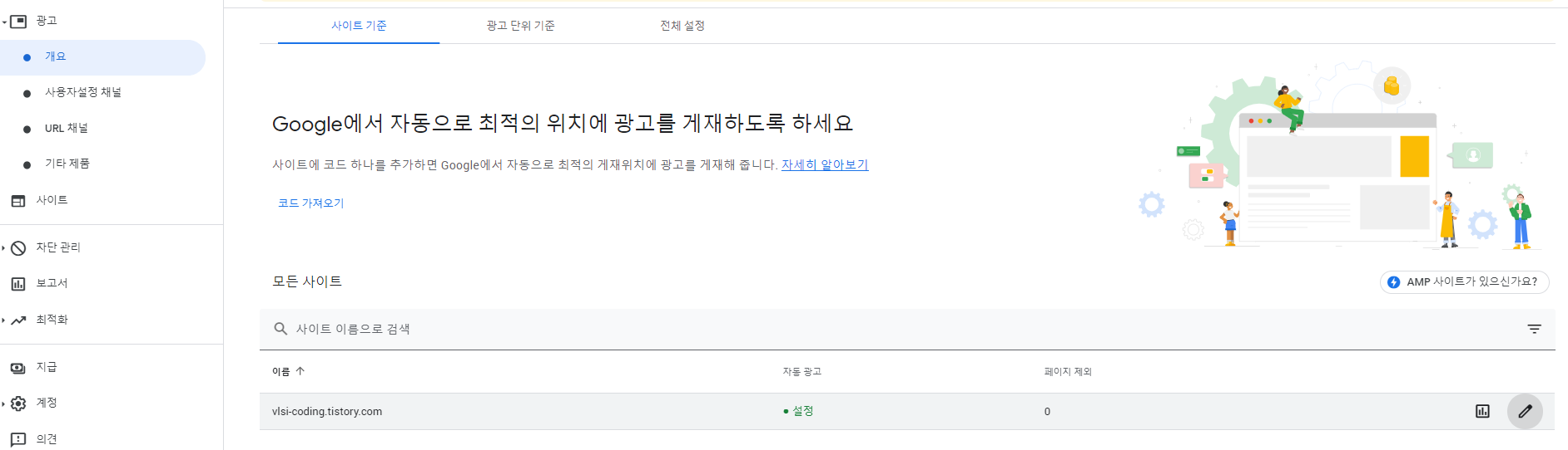 애드센스 광고란을 들어가 개요를 선택하면