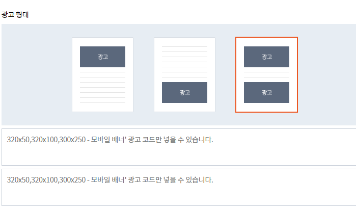 4. 광고 사이즈는 모바일, pc에 맞춰서 고정형을 생성해주는 것이 좋다.