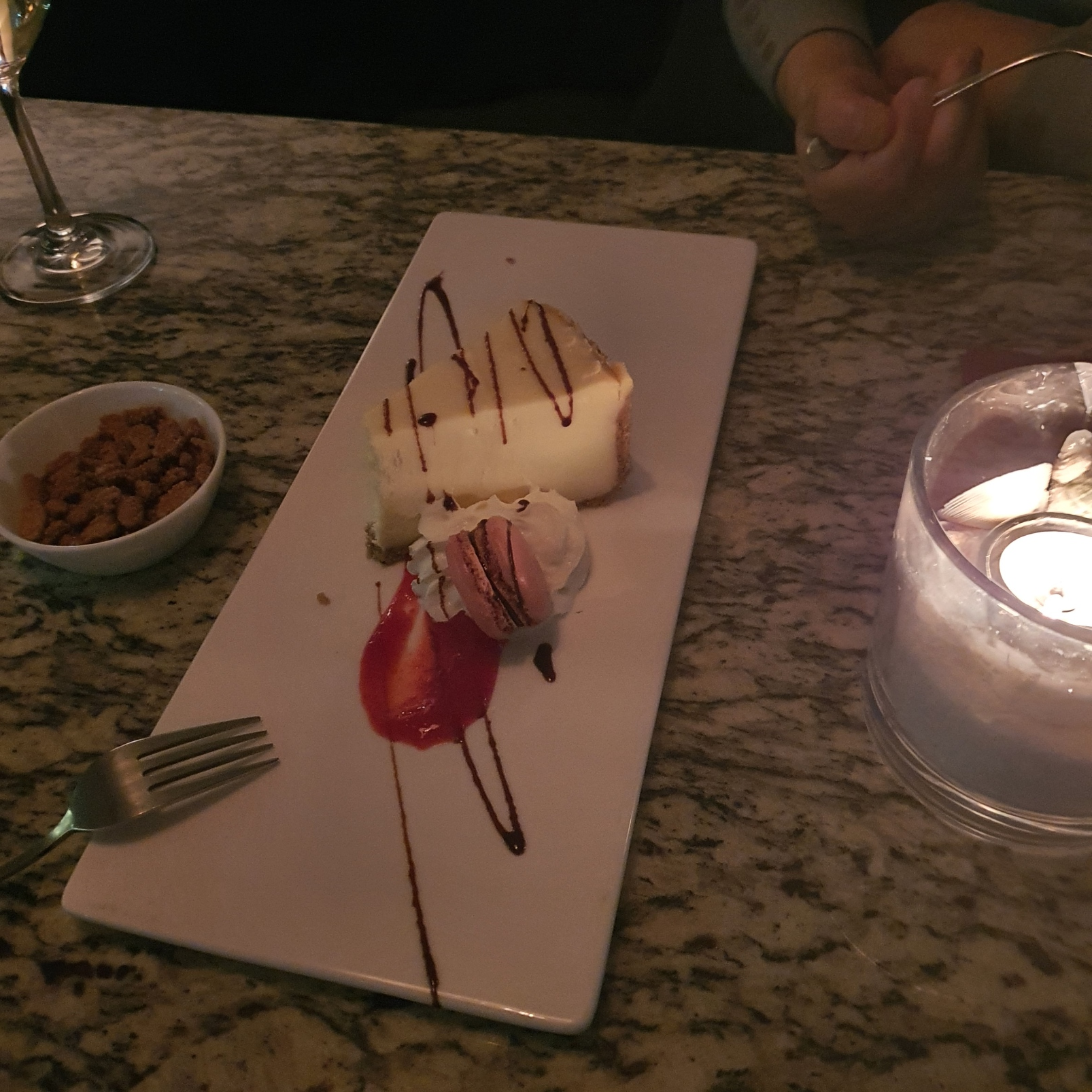 레드와인에 치즈케익이 잘 어울렸다.
