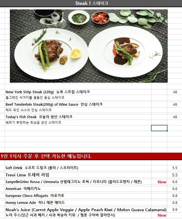 메뉴판은 아래와 같다