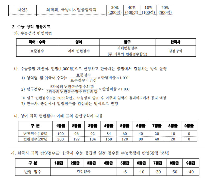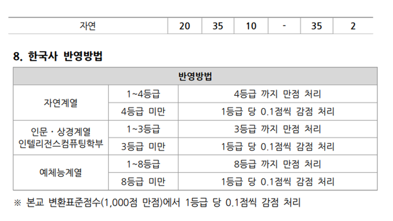 탐구영역은 수능 성적표 상의 백분위를 활용한 본교 자체 산출 변환표준점수 적용함