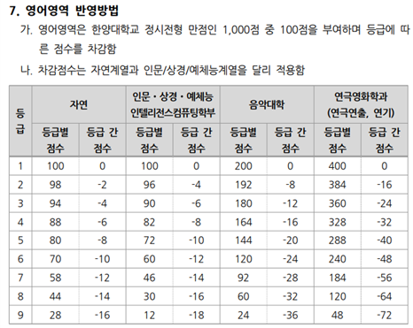 (5) 영어영역 한국사 영역 , 은 본교 산출 등급별 환산점수 또는 등급별 가산점 (p.23 )